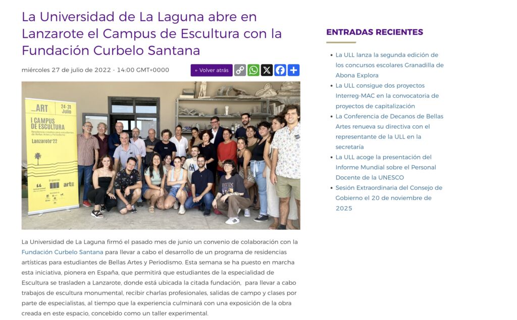 El Campus de Escultura de Lanzarote se configura como un programa de residencia y experimentación artística para estudiantes universitarios.