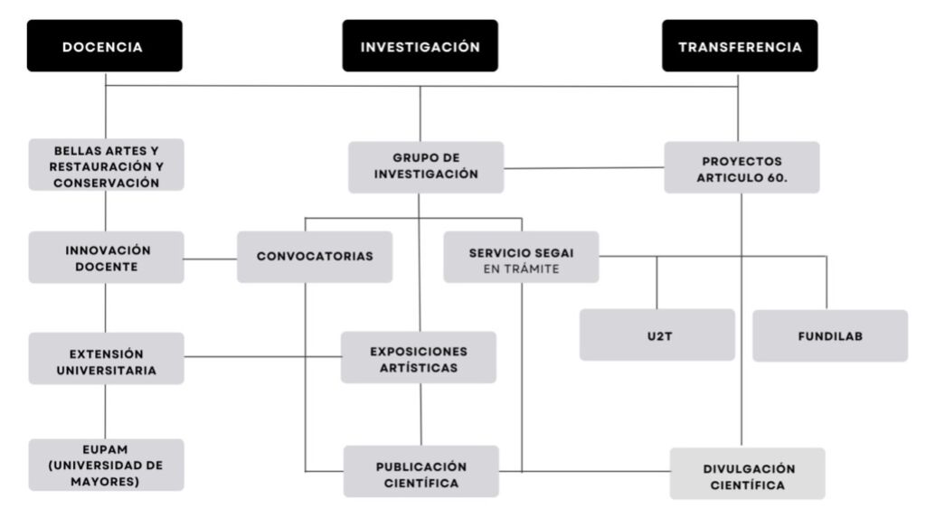 El Grupo de Investigación en Técnicas, Procedimientos y Discursos Escultóricos Contemporáneos desarrolla su actividad en torno a la escultura contemporánea, integrando docencia, investigación y transferencia. Vinculado al Aula-Taller de Fundición Artística de la Universidad de La Laguna, el grupo se ha consolidado como un referente en el estudio de los materiales, procesos y tecnologías aplicadas a la producción escultórica.